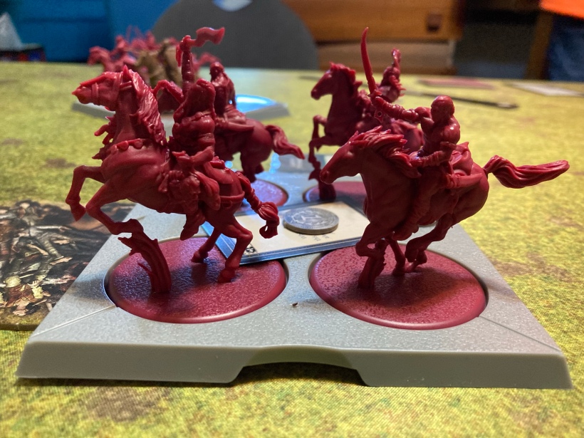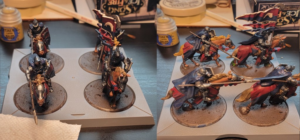 My Tully Cavaliers managed to clean up the House Lannister heavy cavalry as well some of Andrews’ Lannister infantry. I was so impressed with the performance of my Tully Cavaliers that I set out to paint them first.